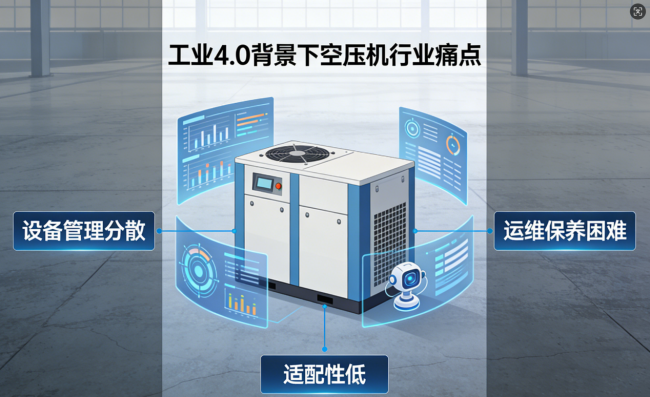 工业数字化转型加速推进,空压机作为工业生产的核心动力源,其数字化改造已成为企业降本增效的重要抓手。但设备管理分散、运维难度大、机型繁杂、适配性不足等痛点,仍制约着行业高质量发展。